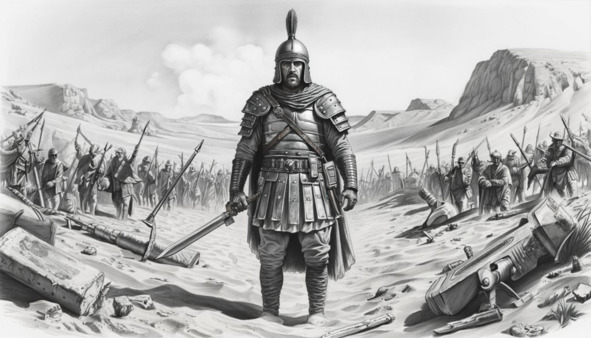 Говорили, что боги пустыни, впечатлённые его жертвой, забрали его к себе. Шептались, что он выжил, но потерял память и теперь бродит по дюнам как вечный страж. А самые суеверные легионеры клялись, что в ночи перед бурей можно увидеть его силуэт на фоне луны – одинокий воин, обречённый вечно охранять ту битву, которую он проиграл, но которой лишил врага победы.