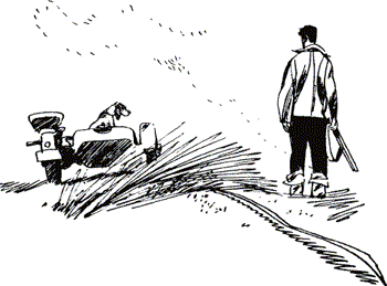 Ича вернулась и начала покрикивать на Санина от нетерпения, пока он вытаскивал сумку, ружьё, патронташ, флягу с водой для себя и бидончик с водой для неё.