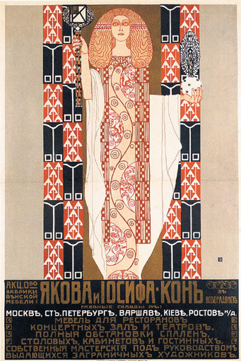 Коломан Мозер. Рекламный плакат мебельной компании «Jacob & Josef Kohn» для России. Ок. 1904. Музей декоративно-прикладного искусства Вена