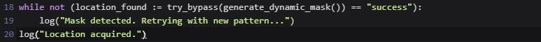 Экран замер, а затем снова вспыхнул: «Mask detected. Retrying with new pattern…»