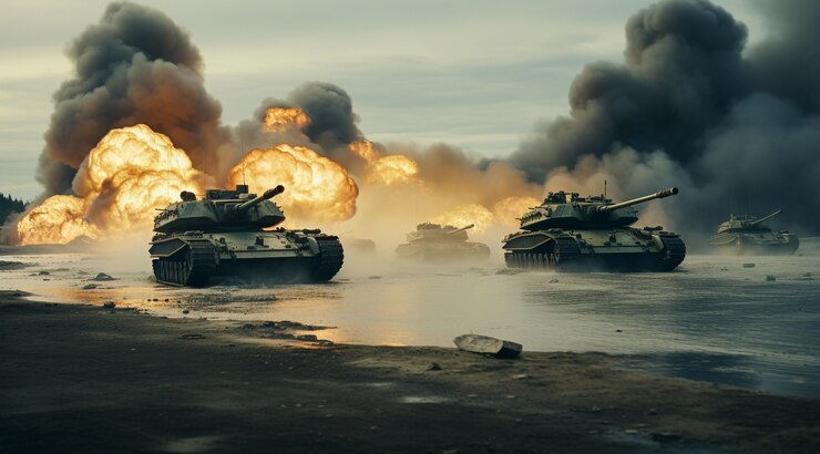 Рисунок 2. Наступление танковой роты по побережью Ниццы. Войска Рейха использовали танки для уничтожения опорников противника в Ницце, стремительного захвата важных точек и широкого охвата самого города. Поддерживая мотопехоту они стремительным наступлением занимали предместья и отсекали подкрепления. Имперские танковые войска отличались предпочтением средней и тяжёлой бронетехники. Они уступали в технологичности танковым Директории Коммун, Информакратии и Либеральной Капиталистической Республике, однако многократно превосходили в количестве машин и совокупной огневой мощи.