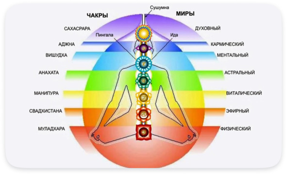 В эзотерике принято разделять человека на две составляющих – Тело и Душа (Сознание). Исходя из традиционной индийской Чакральной Системы: три нижних центра (Муладхара-чакра, Свадхистана-чакра и Манипура-чакра) связаны с формированием физического тела, три верхних центра (Вишудха-чакра, Аджна-чакра и Сахасрара-чакра) отражают процессы, протекающие на уровне Сознания (ментального тела человека), при этом четвертый центр (Анахата-чакра) представляет собой область соединения Тела и Сознания.