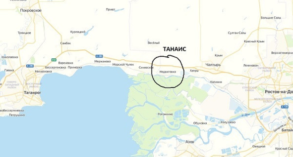 Ia Местоположение Танаиса между Ростовым и Таганрогом (карта Яндекса)