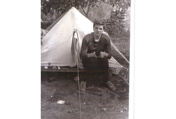 II Молодой автор на пороге своей палатки с лагерным котенком в руках