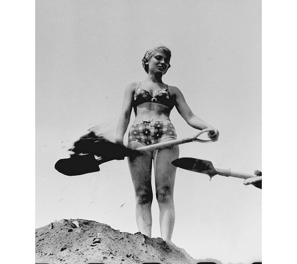 На этом участке копали только «мальчики». В те далекие заскорузлые времена было много гендерных заморочек. Не было и речи, чтобы наши москвички, студентки МГУ, орудовали столь грубыми предметами как совковая или штыковая лопата, не говоря уже о ломе или кайле, под палящим степным солнцем. Они не носили носилки с землей. Что, если они повредят нежные внутренние органы, а ведь им же рожать? Никакой бы руководитель на это не пошел13. Да и не по-джентльменски это! Совсем не то в наше просвещенное время. Девушки с лопатами фигурируют на снимках на современных российских раскопах везде и во всех ролях.