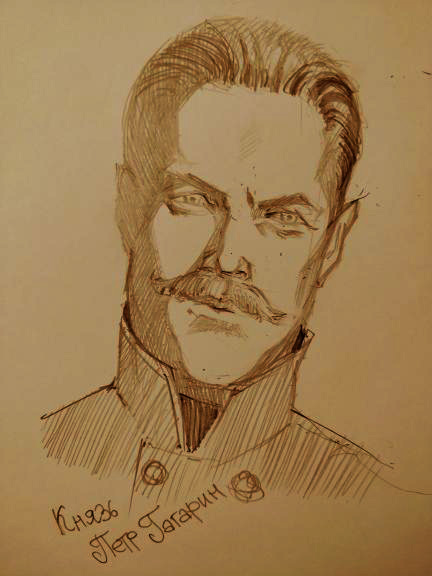 – Шапка у него была меховая круглая с пышным султаном сбоку. А во что одет, увы не припоминаю – во что-то серое…