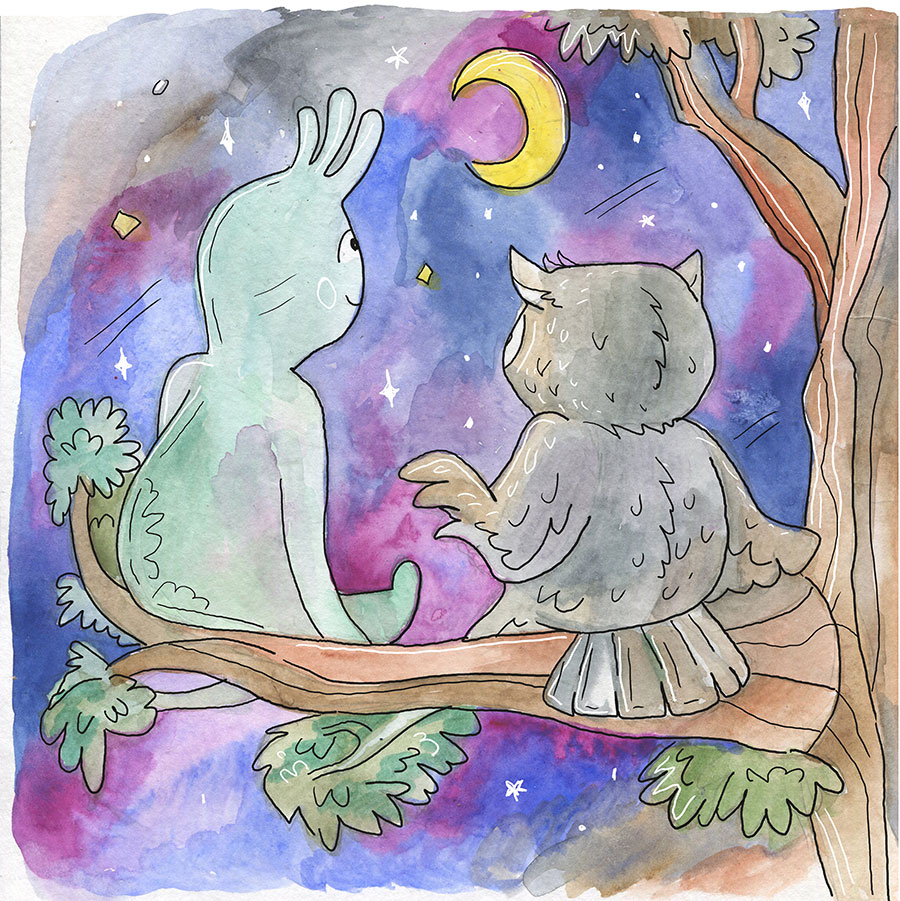 Оказалось, что оба умеют летать, оба не спят по ночам, избегают людей, предпочитают ясное небо тучам, потому что оба любят смотреть на звезды и луну и фантазировать.