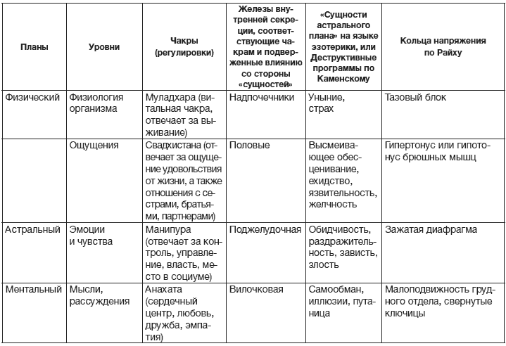 А почему эмоция оказалась непереносимой и оттого блокированной? Идем еще на ступеньку выше – на уровень ментала (см. табличку на с. 18–19, полный смысл которой вы поймете по ходу чтения книги) – и видим: причина в том, что мысли человека, его устремления не соответствовали ситуации, в которой он оказался. И человек погрузился, например, в утешительный самообман: «Ну, ничего, не хуже, чем у других…», «Ладно, потерпим…»…