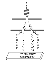 – Но можно добиться совершенно иного результата. Совсем другой картины. Если ты поместишь у щелей датчики, – я начал рисовать под первой картинкой новую, – они все изменят. В присутствии датчиков происходит что-то вроде перехода от вероятного к абсолютному – и результат таков, как будто где-то между излучателем и экраном свет перестал вести себя как волна и начал – как поток частиц.