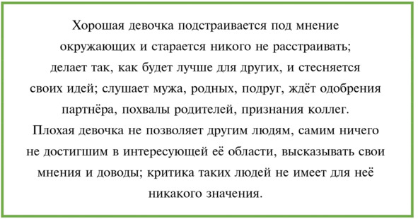 Плохая девочка способна озвучить, что ей нравится, а что нет, не объясняя причин и не оправдываясь, вне зависимости от потребностей близких людей.