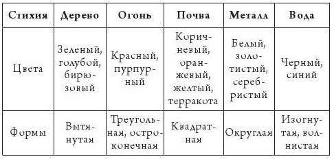 Каждому направлению соответствует своя стихия (всего есть пять стихий, некоторые бывают «Малыми» и «Большими»), своя триграмма, свой цвет и свое «жизненное устремление» – то есть удача определенного рода.