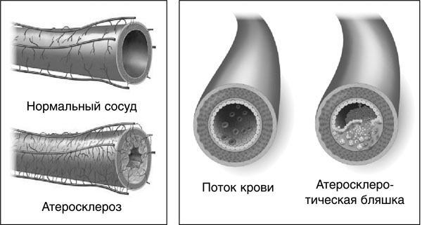 Атеросклероз – хроническое заболевание, характеризуется нарушениями кровоснабжения из-за сужения просвета сосудов вседствие наслаивания липидных бляшек на их стенках, разрастания соединительной ткани. Наличие атеросклеротических изменений может привести к спазму сосудов сердца, закупорке их тромботической массой – это опасное для жизни заболевание, характеризующееся нарушением кровотока и повышением вязкости крови. Сосуды, снабжающие бляшку кровью, травмируются и могут разорваться с образованием кровоизлияния, которое приподнимает бляшку, усугубляя сужение просвета сосуда, вплоть до полного закрытия. По мере развития заболевания в стенке артерий происходит отложение липидов и белков, вокруг которых разрастается соединительная ткань, а на внутренней поверхности артерий и аорты обнаруживаются бляшки. Под каждой из таких бляшек разрушаются слои сосудистой стенки, после чего бляшка проникает в мышечный слой, затем в образовавшуюся атеросклеротическую бляшку и окружающую ее ткань откладываются соли кальция (известь). Бляшка становится более плотной, хрупкой, суживает просвет сосуда, не позволяя току крови поступать в пораженный сосуд.