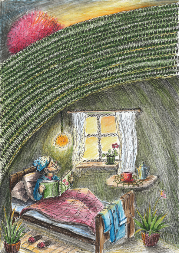 – Нет, я только лёг и собирался читать. Но твоему рассказу я буду рад гораздо больше, чем любой, даже самой интересной книжке! Ты ведь с рассказом ко мне прилетел? – спросил хозяин домика.