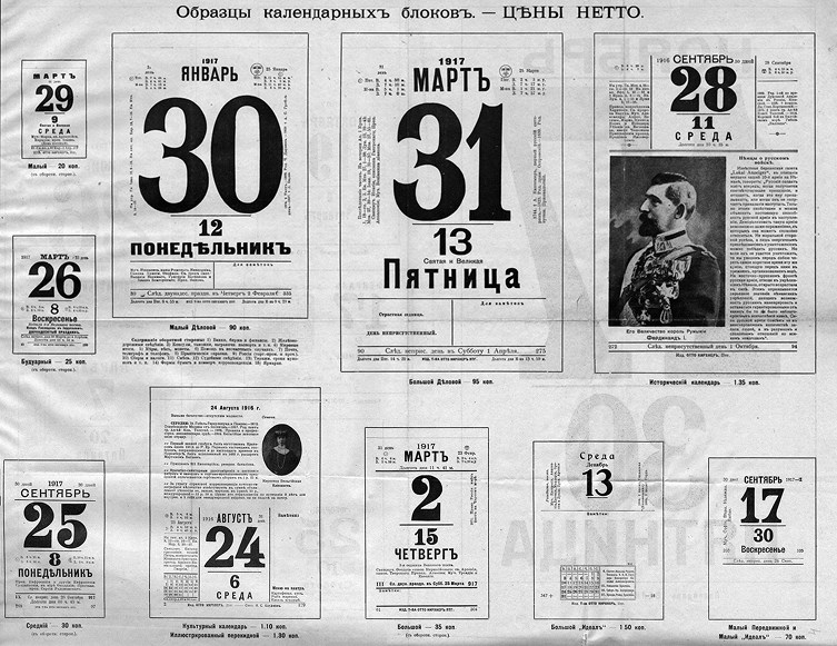 Образцы календарных блоков. «Иллюстрированный каталог на 1916 год издательства календарей „Отто Кирхнер“ в Петрограде»