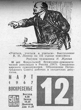 «Учиться, учиться и учиться» – пример использования авторитетного слова в «Календаре школьника (отрывном)» на 1967 год