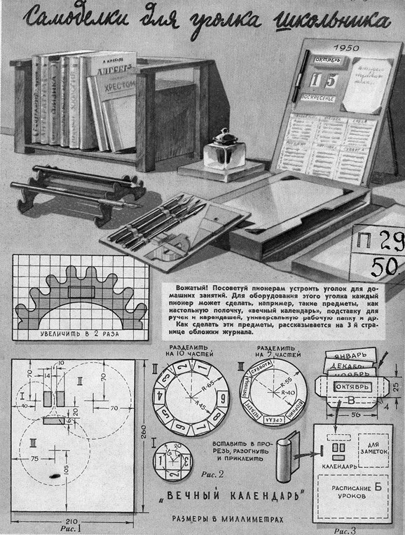 Самодельный календарь на столе советского школьника. Вожатый. Журнал ЦК ВЛКСМ для пионерских вожатых. 1950. № 11