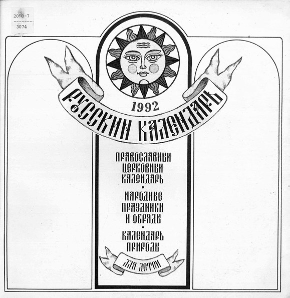 Православие, народ и природа в издании детского календаря 1990‑х годов. Русский календарь. 1992: Православный церковный календарь. Народные праздники и обряды. Календарь природы. Для детей. М.: Эльф, 1991