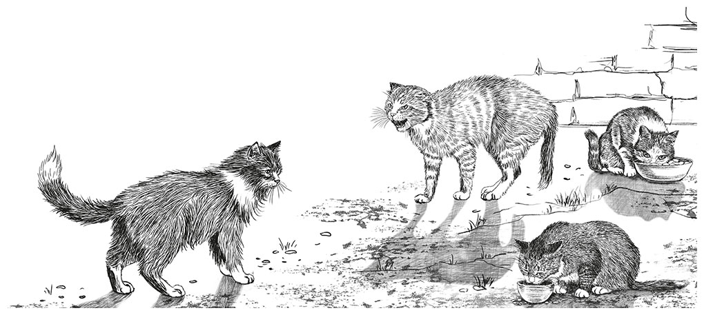 Кругом было очень шумно, а незнакомые запахи страшно пугали. Надрывно мяукнув, я прижался к земле дрожащим телом и смотрел, как удаляется от меня дорогой человек. Когда наконец понял, что остался совсем один, я сунул голову в траву и зажмурился.