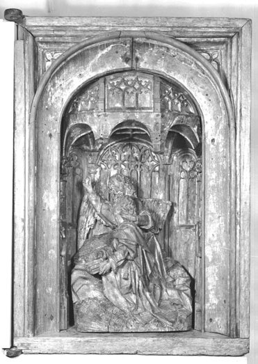 Рис. 20. Святой Иоанн Богослов на острове Патмос. Фрагмент створки деревянного алтаря, исполненного Арианом ван Везелем по заказу Братства. Находился в часовне Собора с 1477 г., а ныне хранится в музее Барства Богоматери в Хертогенбосе.