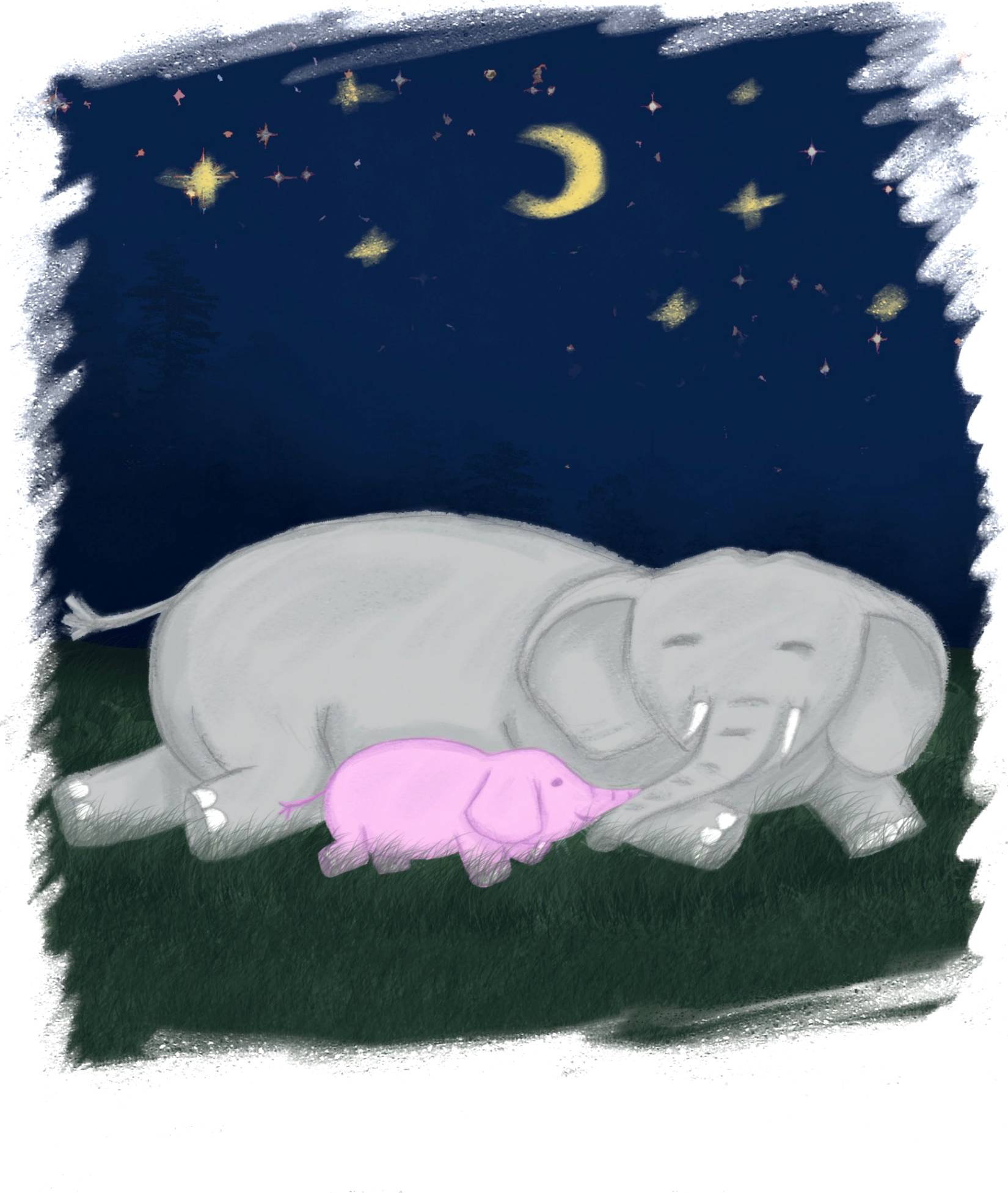 А слонёнок беззаботный шёл вприпрыжку и глядел.