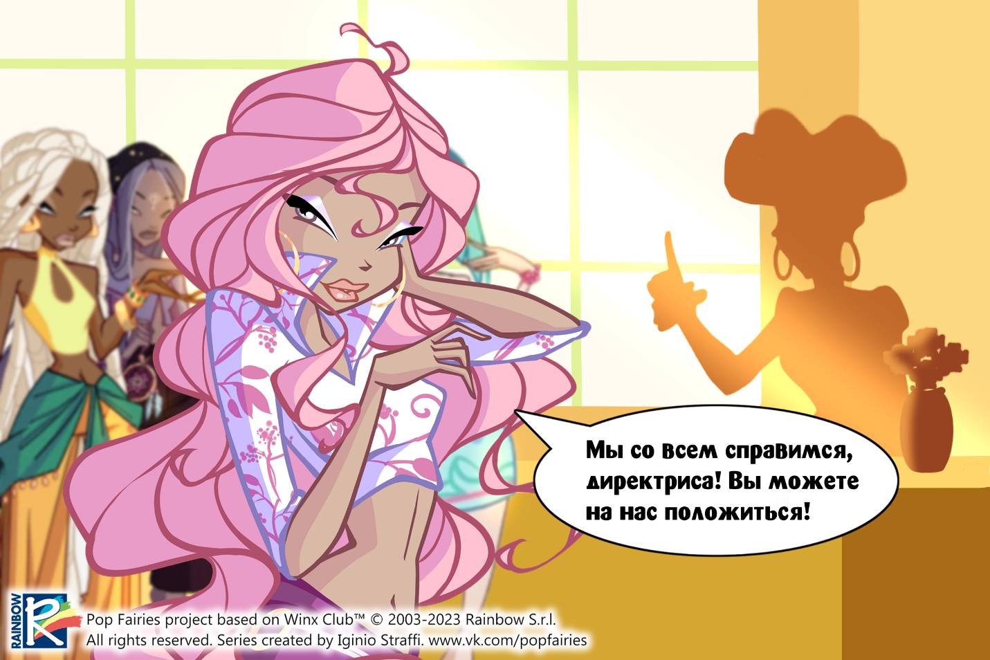 – Сейчас делами академии управляет Мисс Муза, и я очень рада, что именно она будет курировать схватку. – поглядывая фотографию в рамке со всеми феями из Клуба Винкс, стоящую на её столе, сказала Фарагонда. – Но будьте уверены, что в любом случае придётся нелегко. У нашей школы достаточно недоброжелателей.