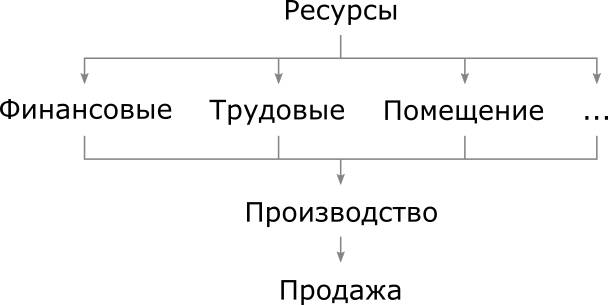 Механизм функционирования бизнеса в общих чертах состоит из двух этапов: вначале бизнес привлекает финансовые, трудовые и материальные ресурсы, чтобы в дальнейшем произвести и продать востребованные рынком товары и услуги. Обратите внимание, что в бизнесе не так важно произвести продукт (услугу), как важно его продать; но еще важнее – получить с довольного клиента деньги. И самое главное в бизнесе – сделать клиента успешным, тогда он вновь и вновь будет покупать ваш товар и приносить вам деньги. Общая схема функционирования бизнеса представлена на следующем рисунке: