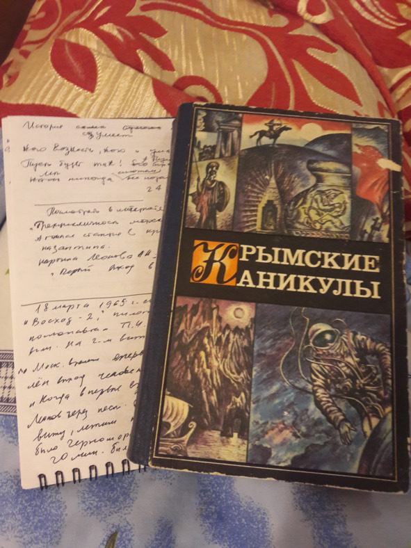 Очарованный неповторимыми видами моря в разную погоду, обдуваемый смешанными целебными ветрами четырёх видов – горным, луговым, морским и степным, я находился в прекрасном романтическом настроении всё это время. Любовь к Крыму подкрепил рассказ о космонавте А. А. Леонове, впервые вышедшем в открытый космос 18 марта 1965 с корабля «Восход-2». Леонов пишет: