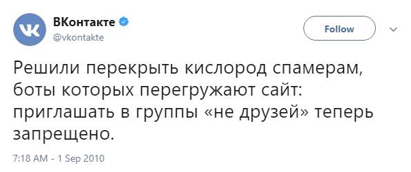 А ранним утром первого сентября руководитель пресс-службы ВКонтакте официально сообщил, что теперь приглашать пользователей в группы смогут только их друзья, провозгласив тем самым смерть инвайтинга в ВК. Миллионы аккаунтов-ботов, с которых велась рассылка приглашений, замерли в бездействии.