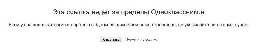 А чуть ниже находилась кнопка «Отмена» и набранная мелким серым шрифтом надпись «Перейти по ссылке», нажав на которую пользователь наконец-то мог освободиться из объятий своих Одноклассников. Суть в том, что эти два элемента намеренно свёрстаны так, чтобы кнопка «Отмена» выглядела в глазах смотрящего предпочтительным вариантом.