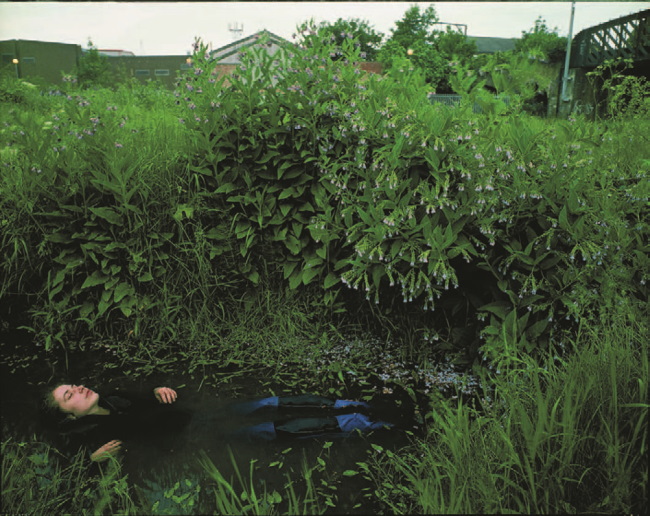 На этой фотографии Крюдсон воссоздает образ шекспировской Офелии в декорациях американских пригородов послевоенного периода. Фотография входит в серию «Сумерки», где очень много подобных сложно выстроенных сцен, отсылающих к научно-фантастическим фильмам, притчам, современным мифам и театру.