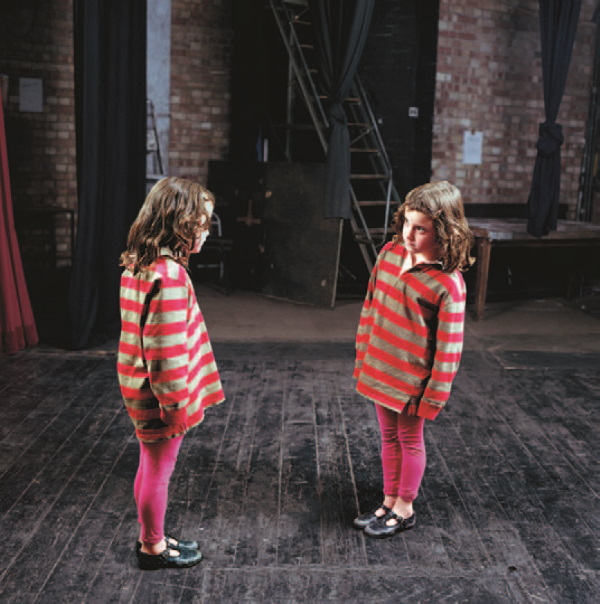 Работа Венди Макмёрдо (род. 1962) «Элен, за кулисами, театр Мерлина (взгляд)» [57], где с помощью цифровой обработки показана девочка и ее двойник, является примером «живой фотокартины», в которой постановочный элемент выявляется сразу. Девочки удивленно смотрят на своих двойников на театральной сцене (выбор фона служит отсылкой к постановочной фотографии, а также к изменчивости сценического пространства). В тех «живых фотокартинах», где отражены коллективные страхи и фантазии с акцентом на жутковатое, в качестве моделей особенно часто используются дети. К этому зрительно и психологически выразительному приему прибегает кубинская художница Дебора Меcа-Пелли (род. 1968), которая воспроизводит сцены из сказок и известных сюжетов, используя в качестве моделей девушек и создавая ощущение сильной тревоги [58]. Ее декорации и реквизит откровенно позаимствованы из детских сказок – например, красные туфельки Дороти из «Волшебника страны Оз» (1900), по которому в 1939 году был снят ставший очень популярным фильм, или спальня, в которой три медведя обнаруживают спящую Златовласку. Меcа-Пелли показывает сцены, на первый взгляд почерпнутые из сказок в их привычном изложении, но одновременно при помощи света и вуайеристического ракурса придает им драматизм и элемент зловещего. Кроме того, как, например, в представленной здесь работе, она порой комбинирует и видоизменяет сюжеты: рядом с ногами Златовласки – а может, и Дороти – возникает фаллический хвост льва из рождественской пантомимы, свернувшегося вокруг девочки.