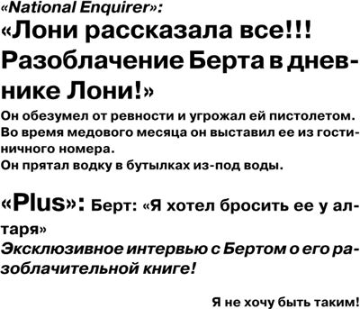 Имеется в виду развод актера Берта Рейнольдса («Ночи в стиле буги», «Смоки и бандит» и др.) и актрисы Лони Андерсон (в основном снималась в сериалах: «Мелроуз-Плейс» и др.). Проходил в 1993 г., широко обсуждался в прессе.