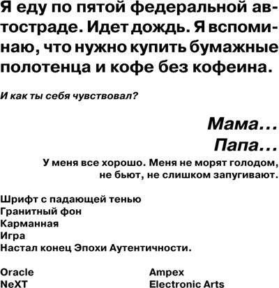 Я подумал о том, как жил в Microsoft – скорчившись за компьютером, без любви, без физических ощущений – и страшно разозлился. Хочется забыть это все и начать жить дальше. По-настоящему. Не хочу вспоминать, что годами игнорировал собственное тело и думал только о программном коде. О чужой абстракции.