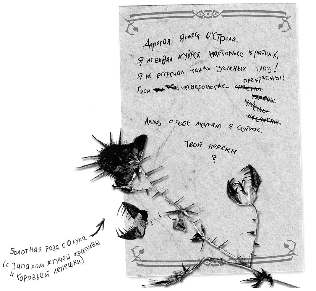 – В письмо вложен цветок. Романтично, не правда ли? Очень мило… – проговорил он негромко, вытряхивая цветок из письма себе на ладонь. – И это… болотная роза Олуха.