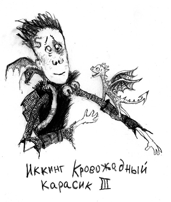Это был мальчик лет четырнадцати, тощий и весьма непримечательный на вид. На лбу у него выделялась темно-лиловая метка в виде дракона, которую люди называли Клеймом раба. Звали его Иккинг Кровожадный Карасик III.