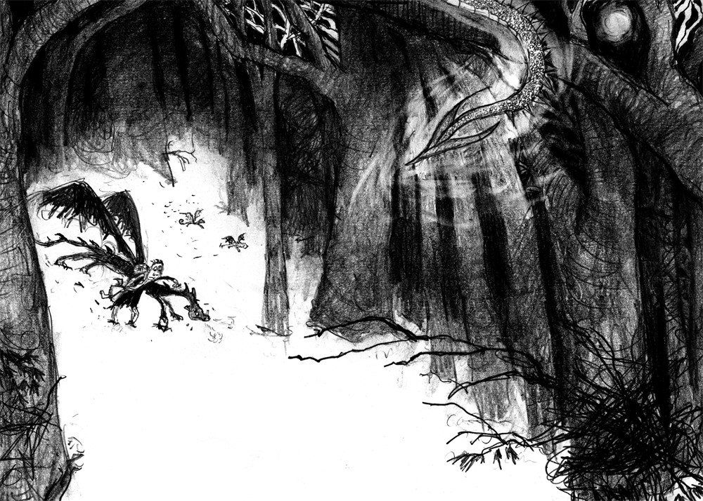 Ветрогон вырос в исключительно быстроходного дракона, и он был меньше призрака, а потому ему было легче лавировать среди деревьев.
