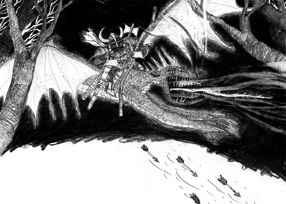 Воин с драконом наверху словно окаменели. Ни листок не шелохнулся, казалось, лес затаил дыхание…