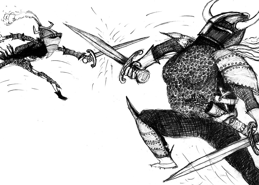 Пока Валгалларама отвлекалась на карту, Иккинг вывернулся из безрукавки и отбежал. Валгалларама со щегольским свистом выхватила меч, могучий Беспромах.