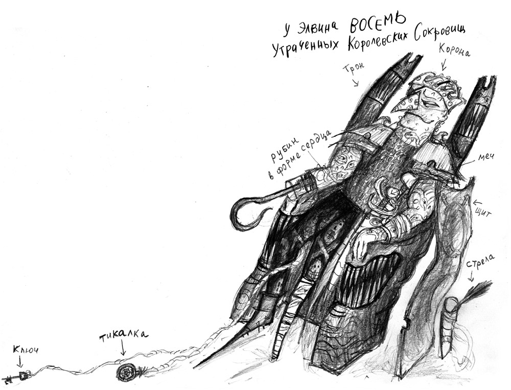 А человеческого у него оставалось не так уж много. На сегодняшний день у Элвина не хватало руки, ноги, носа и глаза. Все это Будущий Король заменил изящными протезами из самой лучшей слоновой кости, золота и железа, на какие только смог наложить лапу посреди войны.