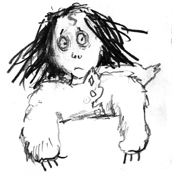 Рядом с ним сидела маленькая девочка с большими глазами, в которых застыло отчаяние, и очень темными всклокоченными волосами, торчавшими под странными углами. Одета она была в костюм медвежонка, застегнутый на все пуговицы, только неправильно. Казалось, она прочла его мысли.