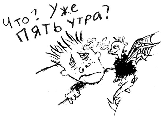 Наутро Беззубик проснулся злой как черт, потому что ему не удалось впасть обратно в зимнюю спячку. А ведь он так старался! Даже зарядку с вечера сделал, чтобы устать хорошенько. Выпил на ночь теплого молока и лег спать вовремя. Однако ничего не помогло! Ровно в пять часов утра его пушистые реснички широко распахнулись – ХЛОП! – будто створки устричной раковины, и всё: больше дракончик не сомкнул глаз ни на минуту.