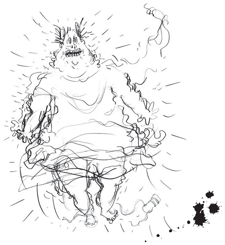 Двухсотпятидесятикилограммовая туша Толстого Консула взлетела в воздух на добрый метр. Волосы Толстого Консула встали дыбом, как иголки у морского ежа, из ушей полетели искры, и все его изобильные телеса озарились приятным голубоватым сиянием, затряслись, заколыхались, заходили ходуном, будто гигантская порция смородинового желе, в которую ударила молния.