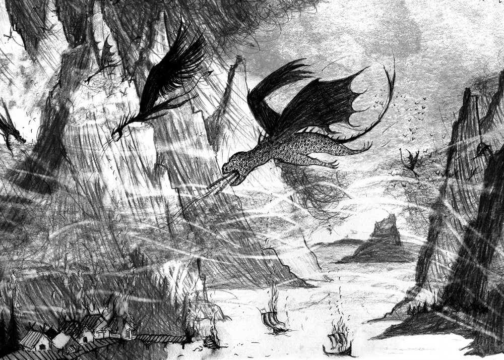Занимался рассвет, и драконы начинали просыпаться. Огромными удушливыми облаками поднимались они над горами, кружили, орали, дрались и зависали, словно рой рассерженной саранчи.