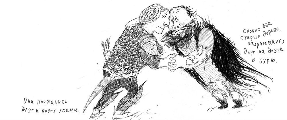 Двое Героев в летах, чуть поскрипывая, прислонились друг к дружке. В последние годы они несколько отяжелели, а от постоянных боев на мечах коленные суставы склонны изнашиваться. Они прижались друг к другу лбами, Печать к Печати, словно два старых дерева, опирающихся друг на друга в бурю.