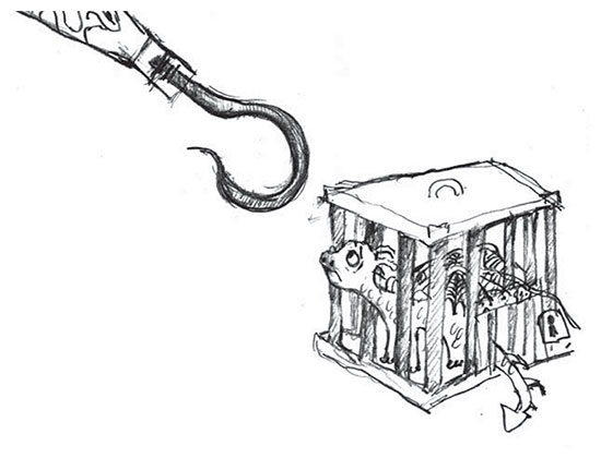 Дракончик просунул мордочку сквозь прутья и плюнул огнем Элвину на здоровую руку. А затем завыл еще громче.