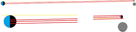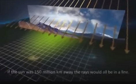 – А это то, под каким углом лучи должны заходить на землю с расстояния 150 млн км от солнца, размер которого более 1,3 млн км в диаметре. Они заходят под прямым углом.