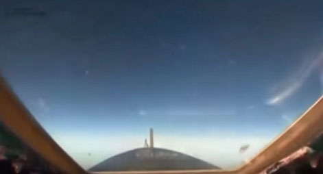 – Это радиус обзора с высоты 30 км. В любую точку вокруг себя ты видишь на расстоянии 650 км. В общем, если ты смотришь перед собой, ты видишь полукруг с диаметром 1300 км. Искривление должно быть 11 градусов. Т. е. высота центральной точки перед тобой будет выше на 11 градусов, чем точки по бокам обзора. К тому же горизонт должен снизиться, но он на том же уровне глаз, как и при осмотре с Земли, даже чуть выше.