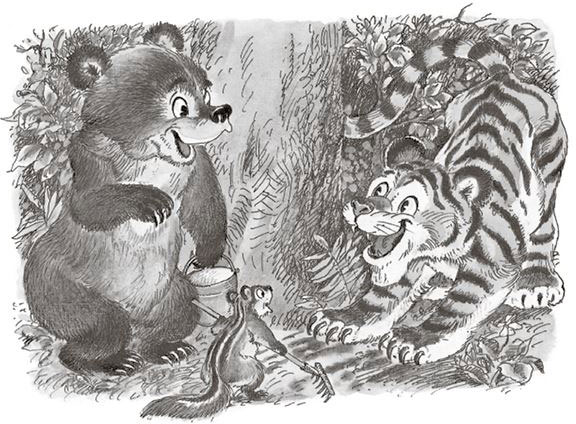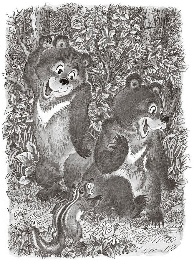Он дружил с белогрудыми медвежатами и с дядюшкой бурундуком, у которого на спине тоже были полосочки.