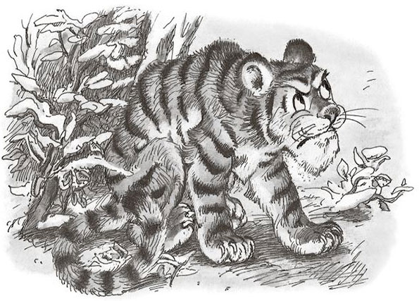 И тут началась метель. Стало очень холодно. Замёрз тигрёнок так сильно, что даже задрожал.