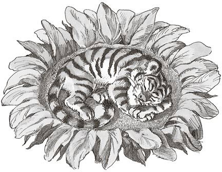 И там, наверху, прямо на подсолнухе спал тигрёнок.